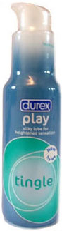 - Play Tingle van Durex glijmiddel (gemiddelde prijs €11,65 bij Condoom Anoniem, bij de PABO slechts €6,95 maar dan betaal je nog wel €4,95 verzendkosten). Het is een plezier verhogend glijmiddel dat zorgt voor een verhoogde tintelende stimulatie. Het kan gebruikt worden over het gehele lichaam, zodat het ideaal is voor een top-tot-teen tintelende ervaring. Gemakkelijke pompverpakking. Dit glijmiddel op siliconebasis bevat menthol voor een tintelende sensatie! Het is dus veilig te gebruiken met condooms. Droogt niet uit op het lichaam. De verfrissende geur en smaak van mint.