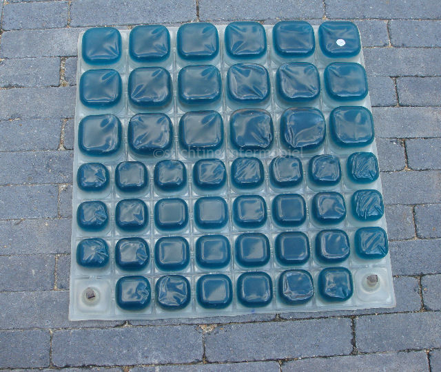 Dit rolstoelkussen bestaat uit allemaal vierkantjes gevuld met lucht en gel om de druk te verminderen en drukplekken te voorkomen. Het zijn twee afzonderlijke compartimenten (beiden met zowel kleine en grote vierkantjes) die je met een handpompje kunt oppompen. Zo kun je zelf bepalen hoe hard of zacht je het kussen wilt hebben maar kun je ook de linker,-of rechterhelft wisselen in hardheid.