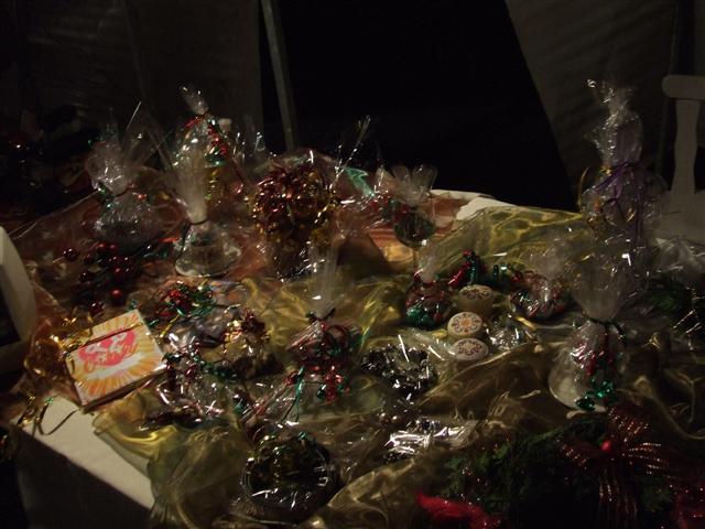 De kerstkransen en stukjes gemaakt door Mia Cobben en haar vriendinnen De spullen die we verkochten