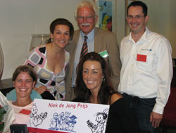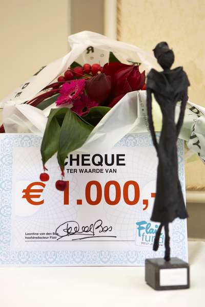 19 november 2007 Heemskerk, uitreiking Flair award 2007: Veroni wordt overtijgend Flair vrouw 2007 Emile neemt de prijs voor Veroni ontvangst van hoofdredactrice Leontine van den Bos              De flair awad 2007 met de cheque en de bloemen