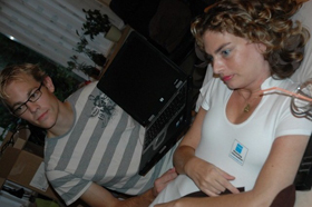 | Op uitnodiging van ondersteuner Ruud Feltkamp waren Emile, Olga, Chantal en Gerben aanwezig bij de filmpremière van Lover of Loser. Ruud vertolkt de rol van Ricardo in deze film (22 sep'09). | ![]() |