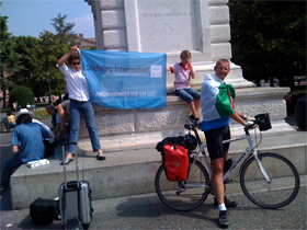 | Benefietstocht. Op 13 juni vertrok Robert Morssinkhof per fiets van Beegden om op 26 juni, en 1350 km verder, in Verona (Italië) te arriveren. Hij fietste maar liefst € 4.500 voor Intermobiel bij elkaar, waarvoor hulde! | ![]() |