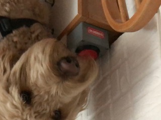 We gaan nog even terug naar Borre, de huidige hulphond van Erna die ze zelf haar krullenbol noemt. Wanneer je de foto’s ziet dan begrijp je dat meteen. Want Borre geeft Erna haar vrijheid en de mogelijkheid om zelfstandig te blijven wonen. Wat doet Borre dan zoal naast de standaard taken? Wanneer de thuiszorg van de ochtend weg is, dan heeft Erna de vrijheid om samen met Borre te gaan en staan waar ze wil. “Borre neemt alle zorg op zich van aankleden tot uitkleden, dingen oprapen, het aangeven van dekens om over me heen te leggen. En voor mij in het bijzonder neemt hij ook een aantal medische taken op zich. Hierbij moet je denken aan het induwen van de injectiespuit drie keer per dag. Hiervoor moet anders de thuiszorg komen. Zoals ik al vertelde slaap ik met een beademingsmachine, deze geeft vaak alarm zonder dat ik het in de gaten heb. Dan maakt Borre mij wakker, en dan kan ik het probleem zelf oplossen. Laatst ging dat niet zo goed, en toen heeft hij uit zichzelf de alarmknop van de personen-alarmering ingeduwd. Dat Borre dit doet, dat geeft een heel erg fijn en veilig gevoel.”