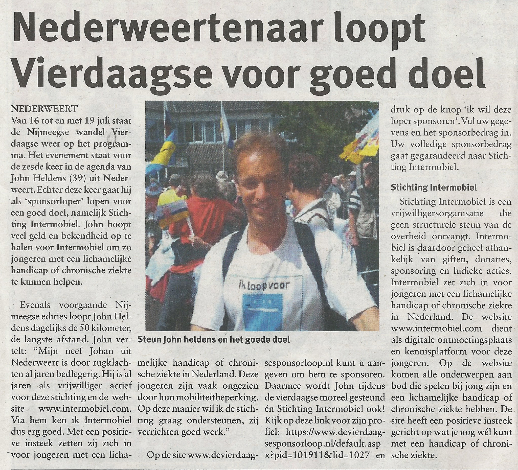 - Nederweertenaar loopt Vierdaagse voor goed doel