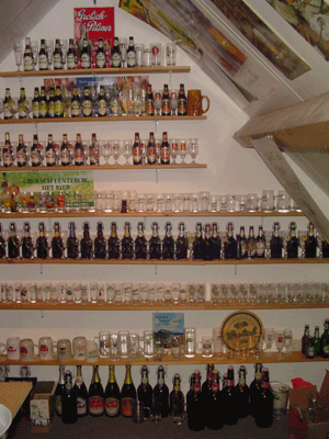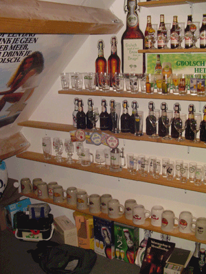 Een deel van de Grolsch verzamelingvan Johan op zolder