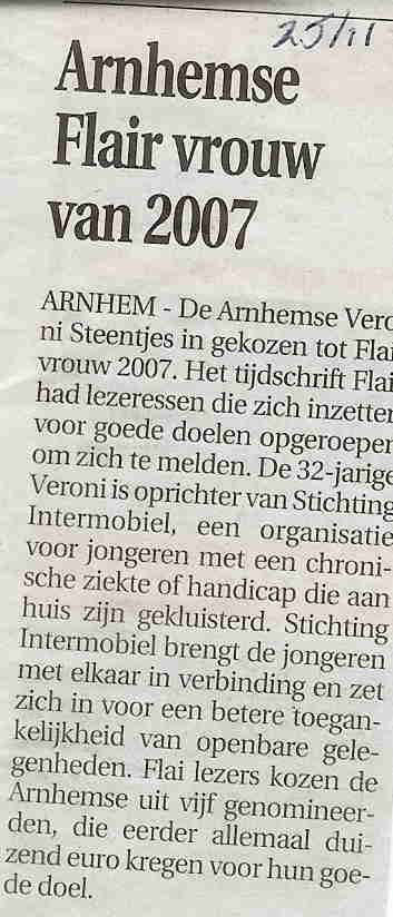 - Veroni Steentjes in Achter de Voordeur (NCRV) achter haar leven en Intermobiel