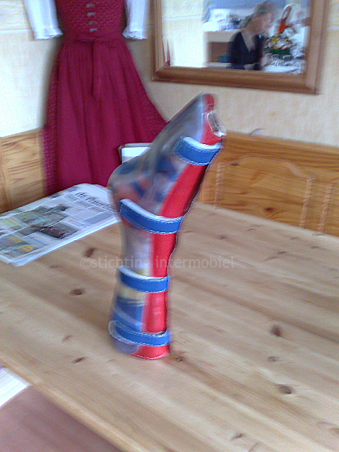Omdat ik door de pd geen dekbed of laken op mijn voet kan verdragen en de enkel vast zit, dus als ik in mijn slaap me omdraai en mijn voet blijft achter het dekbed hangen, is dit heel erg pijnlijk. Ik ben ook erg blij met deze gezellig gekleurde spalk. De maker van het Roessing vroeg aan mij welke kleur ik wilde en ik zei als grap, omdat ik eigenlijk niet kon kiezen, "allemaal",nu dat heeft hij gedaan met dit resultaat!