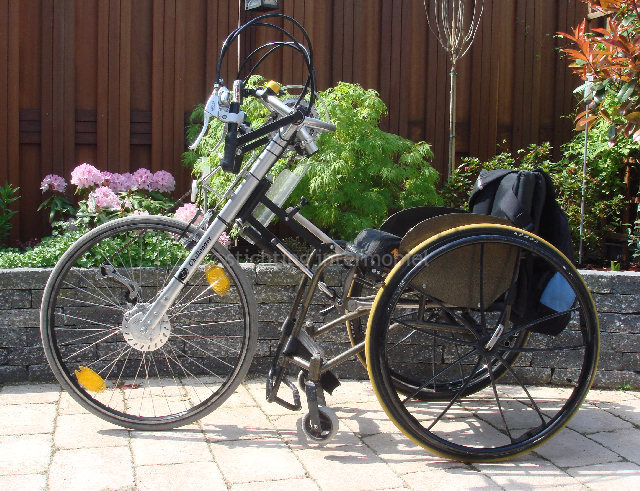 De handbike heeft 21 versnellingen dus je kan er behoorlijk mee rijden. De handbike rijdt erg licht en soepel en is makkelijk aan,-en af te koppelen.