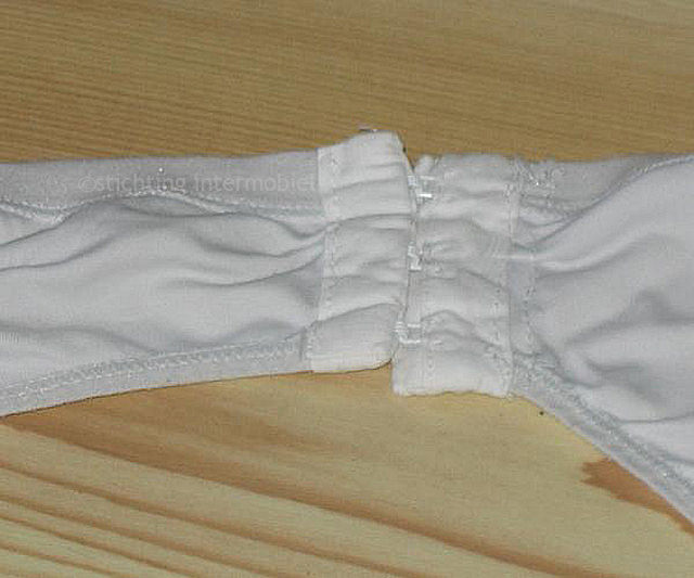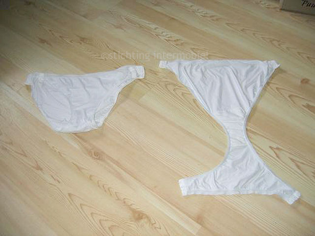 Om gebruik van het invention kussen mogelijk te maken, dient je kleding aangepast te worden. Hiervoor zijn allerlei opties mogelijk. Dit is de versie die mij het best bevalt. De (verder gewoon in de winkel gekochte) kleding vermaak ik zelf of mijn moeder doet het. Het is niet echt moeilijk, maar je bent er wel even mee bezig. Vooral het sloopwerk van te voren (naden openmaken) kost wel wat tijd. Het plaatsen van ritsen in de zijnaden van broeken kan je denk ik in een naaiatelier of naaiwinkel vragen. Vrijwel overal (in ieder geval in grotere steden) zitten wel winkeltjes waar je ritsen kan laten vervangen of broeken kan laten inkorten. Ik denk dat ze dit ook eenvoudig en redelijk betaalbaar zouden kunnen doen. Ritsen haal je van te voren in een fourniturenzaak. Je zou ook kunnen zoeken naar een naaister of iemand die het gewoon leuk vindt om te naaien en je een handje wil helpen. De slipjes aanpassen is iets meer peuterwerk, hiervoor gebruik ik band waarin haken en ogen is verwerkt (te koop bij een goede fourniturenwinkel, jammer genoeg alleen in wit en zwart). Je tornt de zijnaden open (een secuur werkje, omdat je makkelijk in de tricot stof steekt) en zet er aan beide kanten een stukje band op en dit werk je af met een stukje lint aan de buitenzijde. Dit kan misschien ook wel bij zo’n naaiwinkel of atelier. Mocht je het werkelijk willen proberen, dan wil ik best een slip en (bijvoorbeeld oude) broek voor je aanpassen, zodat je het ermee kan proberen en een voorbeeld hebt.Wat betreft die kledingaanpassingen: dit is maar één voorbeeld, er zijn allerlei manieren, ik weet dat er een vrouw is die een stukje klittenband laat zetten in de kruisnaad van de broek (dus tussen je benen) en ook in de slip en daardoor zo de goot naar binnen steekt en zo plast. Bij mij werkte dat niet. Ik heb allerlei varianten geprobeerd en zo kan het voor iemand anders misschien ook weer anders uitgevoerd moeten worden. Dat is een beetje zoekwerk en wat geëxperimenteer.