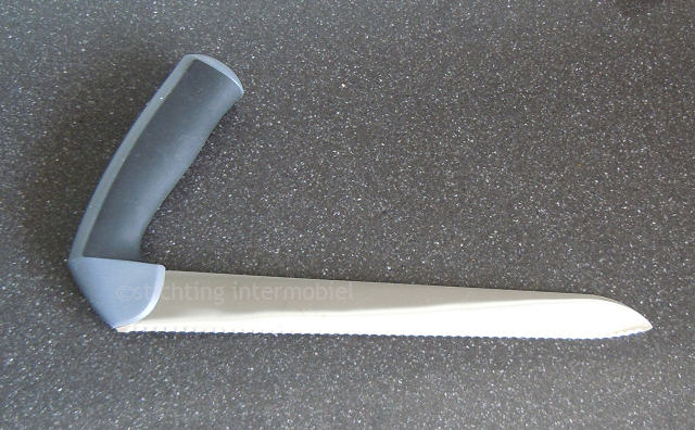 Dit is een broodmes met gehoekt handvat waardoor je het mes anders vast kan pakken. Helaas verkoopt Ikea dit mes niet meer maar van andere merken bestaan ook dit soort (brood)messen.