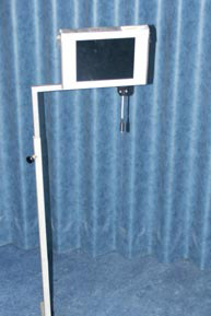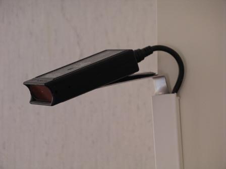Op de monitor van de home servant staan dus de functies die je kunt bedienen. Er is een menu gemaakt van de functies en daarbinnen zijn weer submenu’s gemaakt. Op de foto (middelste) zie je het submenu lampen slaapkamer. Ik heb twee monitoren van de home servant. Een in de woonkamer en een in de slaapkamer. De infrarood zender is nodig is om apparatuur te kunnen bedienen. Ze geeft het signaal door aan de apparatuur. Meestal hangt de zender bij het beeldscherm. Hij hangt op de foto boven het beeldscherm. Ik heb sinds maart 204 een nieuwe home servant en heb dus nu ook een plat scherm TFT in plaats van zo’n groot beeldscherm. Het zijn dezelfde beeldschermen als die voor computers gebruikt worden.