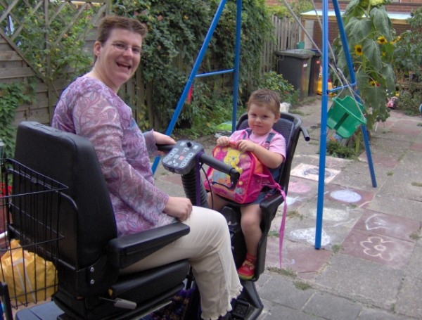 'Ik voel me zo vrij! Ik ben zo trots dat ik samen met mijn dochtertje op stap kan met de scootmobiel.' El... -
