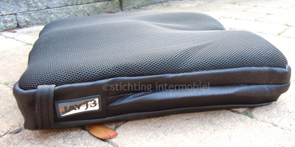 Het Jay J3 kussen bestaat voor een gedeelte uit een gel stuk (bij het zitvlak) en het overig gedeelte is een stevig schuimrubber met een kussenhoes waar ook nog een zacht schruimrubber in zit. Het zit prettig en is bedoeld om (verder) doorzitten te voorkomen. Het kussen schijnt verder ook nog met verschillende modules aangepast te kunnen worden. Het is een stevig kussen die steun geeft maar wel zacht en comfortabel zit.