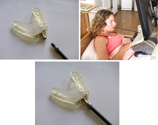 Ik gebruik de mondbit vooral om mee te typen. Ik maak daarom ook gebruik van een kleiner toetsenbord (mini cherry). Dan hoef ik minder grote bewegingen te maken. Het mondbit is door de tandarts gemaakt. Het stuk wat er dus aan moet is door de Revalidatie Techniek Het Dorp gemaakt. Dit is mijn 2e mondbit. De 1e is in het revalidiatiecentrum Roessingh Enschede gemaakt door de tandarts en revalidatie techniek. Het is mogelijk om verschillende stokjes op het bit te zetten.